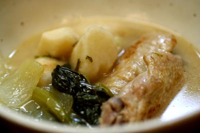 手羽先はほろほろと身が骨から外れるくらい柔らかく煮えて、スープがとっても美味しいです。