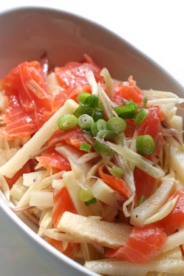 *タケノコ、ミョウガ、スモークサーモンのオリーブオイル和え*