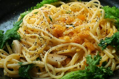 きっと卵同士相性がいいと思ってカルボナーラにしましたが、ちょっと味がボケたかも。オイルだけのほうがカラスミがひきたつ感じです。