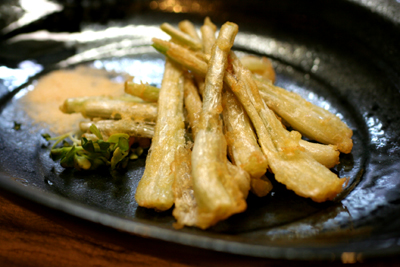 ラッキョウですが揚げることでほっこりとして、美味しいんです。
