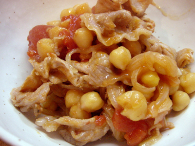 豆も残ってました。豚肉と合わせてホールトマトを加えて煮込みました。