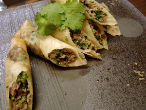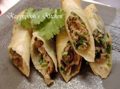 ニラがたくさんあったので、ニラとひき肉をよく練って、春巻きにして揚げました。