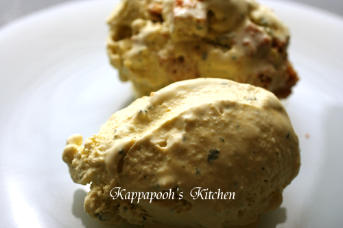 昨夜のカボチャの茶巾絞りで使ったカボチャの残りでアイスクリームを作りました。