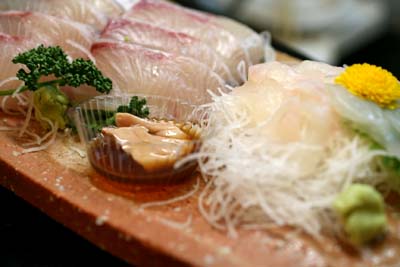 いけすで活きてるカワハギをさばいてもらいました。