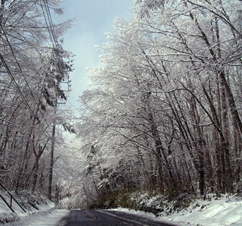前日に降った雪で、(ひょっとしたら朝までかな?)スキー場に向かう途中もこんな雪景色!