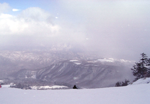 風が強くって、ゴンドラは止まってしまって、一度も乗れず、それでも頑張ってリフトで何度か滑りました。