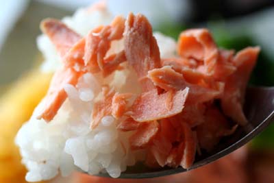 中を開けるとスモークサーモンのいい香りがして、適度な塩分が効いてるのでそのままで美味しい!
