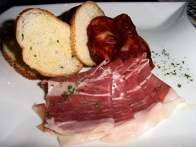 イベリコ豚のチョリソーと生ハムの盛り合わせ。