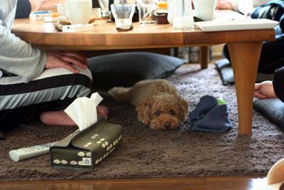 これは食後の風景。散らかってますね~。誰かの靴下もありますね~・