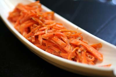 友達にもらったOisixのニンジン。粒マスタード、マヨネーズ、ドレッシングで和えました。ニンジンは切ってレンジで50秒ほど加熱してあります。