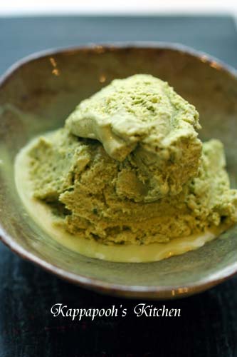 いつものアイスクリームに抹茶を加えて。