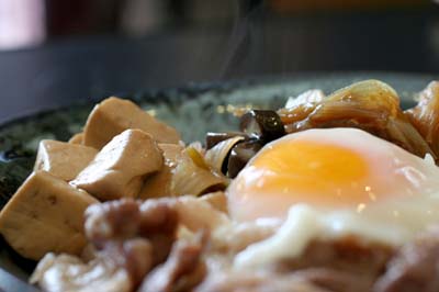鍋には豆腐としいたけが残っていたのでそこに酒・砂糖・醤油で味付けしてすき焼き風にしました。