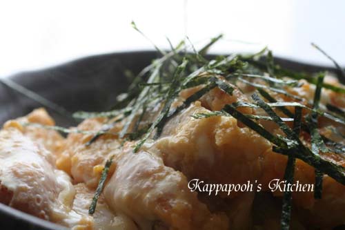卵が半熟に仕上がったらできあがり。器に盛って、刻み海苔をかけます。