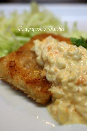 タルタルソースは、ピクルスを入れるのが苦手なので、ゆで卵、玉ねぎのみじん切り、マヨネーズ、ドレッシングで作りました。