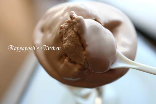 チョコレート味のアイスなんてあんまり普段食べたいと思うことはないのですが、今日は、やはり何かでチョコレートアイスを見たのか、とっても食べたくなって、作ってみました。