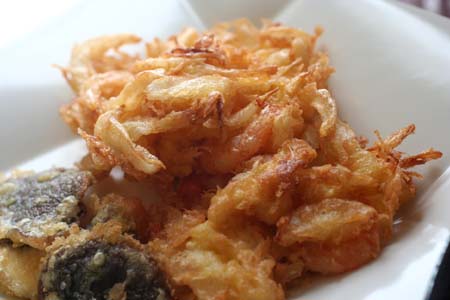 新玉ねぎも甘くって柔らかいのがさくっと揚がってて、エビはぷりっと!!(エビはかなり入れたつもりがほとんど見えてませんね~)