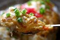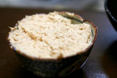 鶏鍋でだしで使った肉をミキサーで細かくして汁気を十分切ったものに、マヨネーズとクレイジーソルトを加えただけです。