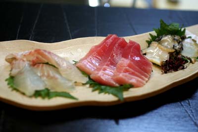 ほうぼう、中トロ、あわびです。(あわびが固くって失敗、失敗)