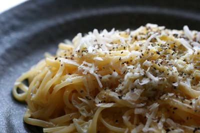 パルミジャーノチーズ・粗挽きコショウを振りかけて、塩はなし。