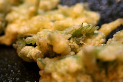 ひとつは大葉に包んで衣をつけて揚げて、残りはそのまま衣で揚げました。