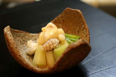 うにくらげ、あん肝、スモークサーモン巻き牡蠣フライ、