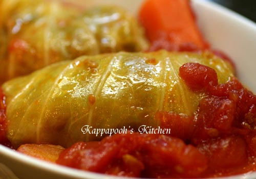 今日はロールキャベツです。最近あちこちでロールキャベツを見て触発されました。やっぱり安いキャベツを利用していろいろ考えるとロールキャベツにいきつきますね~。