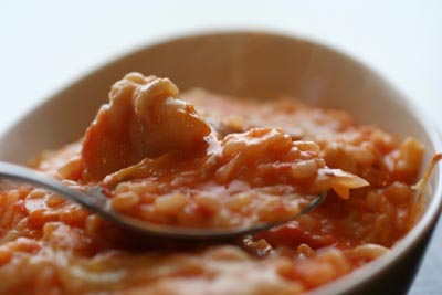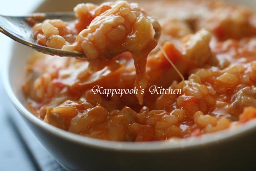 カオリさんのところでトマトクリームシチューを見て以来パスタ以外でやってみたかったのでちょうどいいと思ってリゾットにすることに。