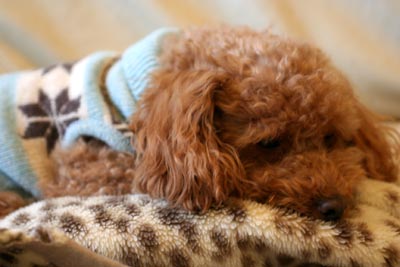 散歩から帰ったままでセーター着ていますがそれでも寒いのかな?