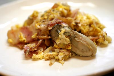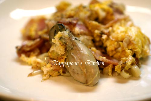 *牡蠣とベーコンとの炒り卵*