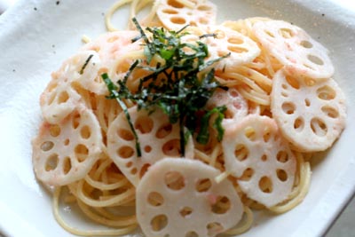 *明太子とレンコンのパスタ*