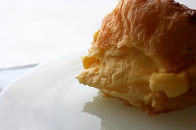 クリームはしっかりめで卵が感じられるカスタードクリームにぱりっとしたシュー皮にアーモンドダイスがアクセントになって。