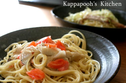 舞茸とスモークサーモンで。