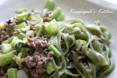 本日のパスタはほうれん草入り。