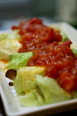 *舞茸のキャベツロール卵巻きトマトソースがけ*