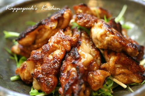 20分ほど漬け込んだら、肉を取り出してタレをよく切って片栗粉をまぶし、手でもみこむようにして油で両面しっかり焼きます。