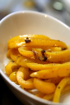 オリーブオイルでニンニクのみじん切り、アンチョビを炒めて、パプリカを加えて炒めたものです。