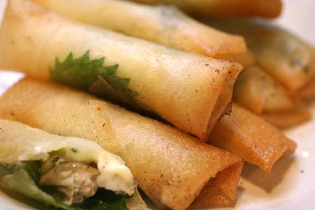 牡蠣とモッツアレラチーズの揚げ春巻き